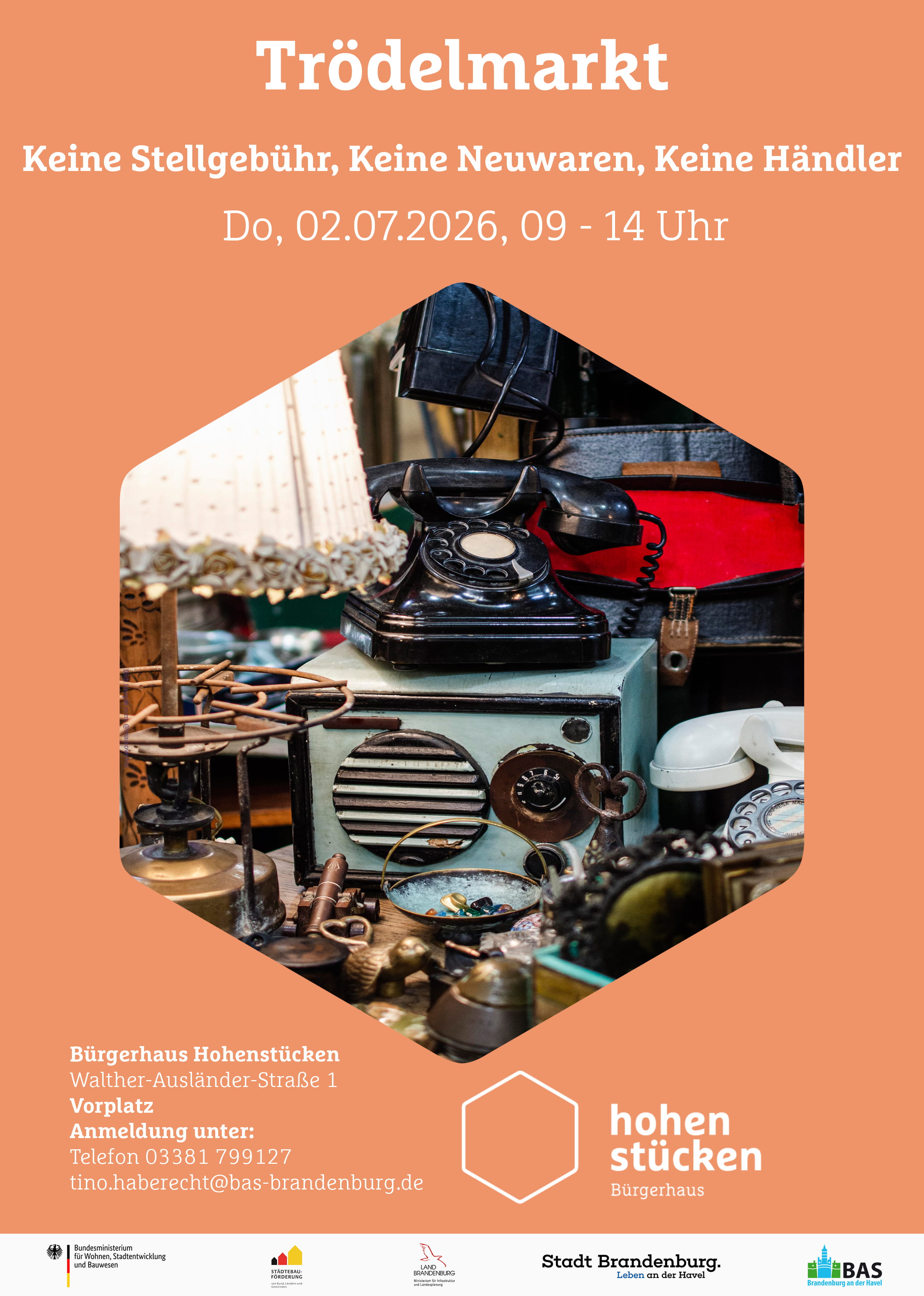 - am 02.07.26 kann in der Zeit von 09.00-14.00Uhr auf dem Vorplatz des Bürgerhauses getrödelt werden