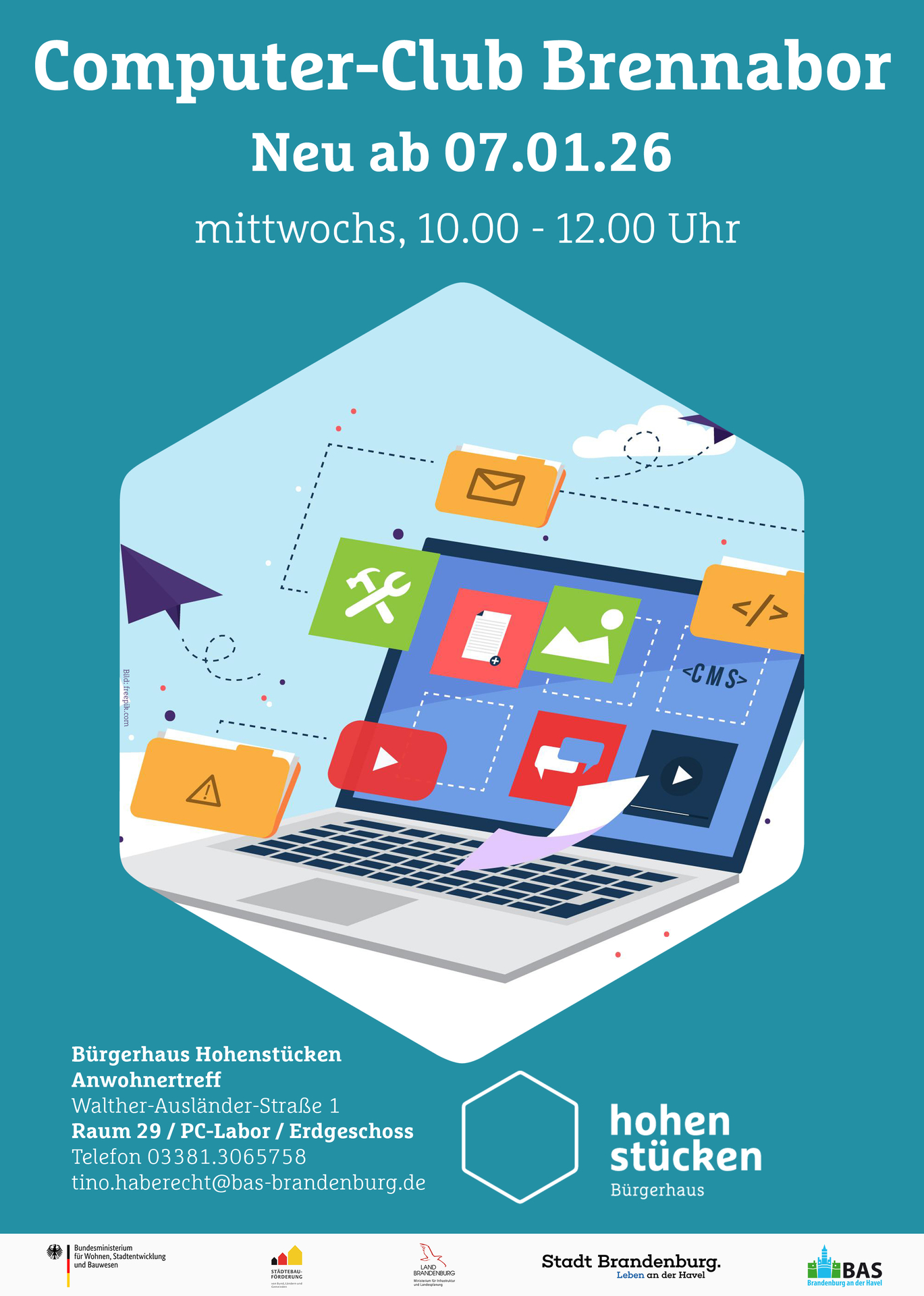- Wo? – im Bürgerhaus Hohenstücken (Walther-AusländerStr.1/14772 Brandenburg), Anwohnertreff, Erdgeschoss, Raum 33